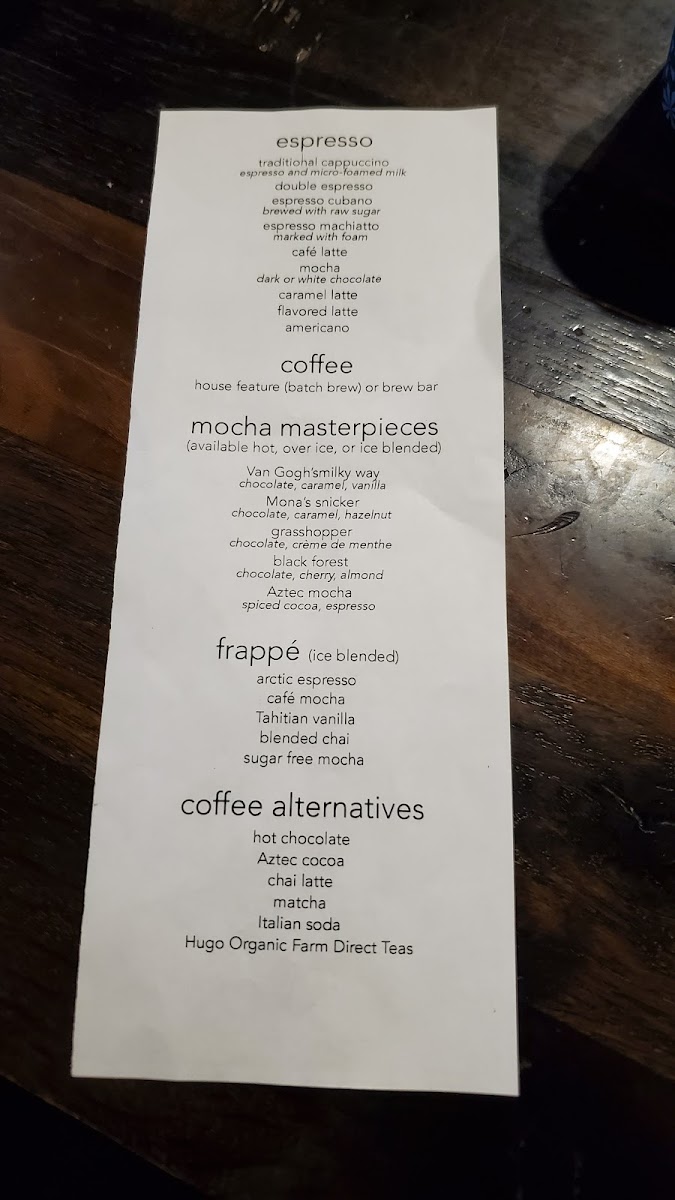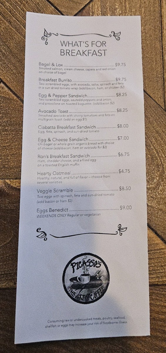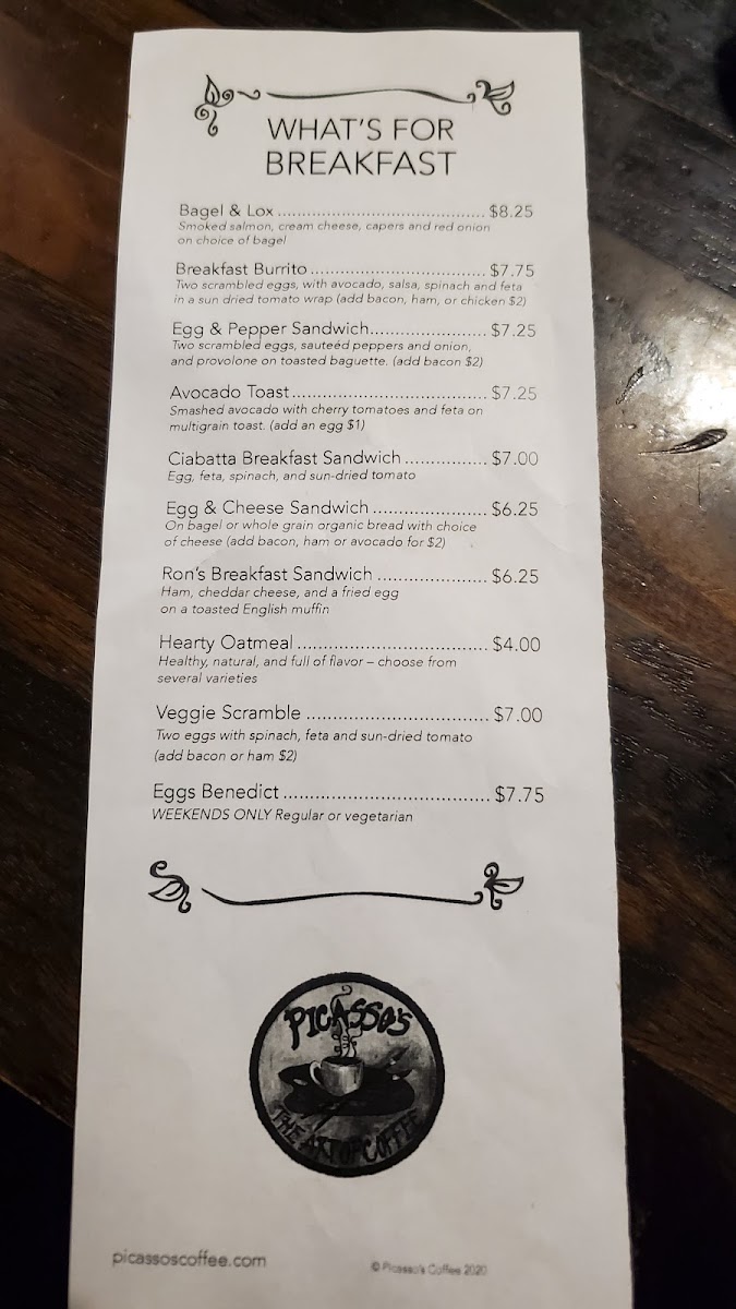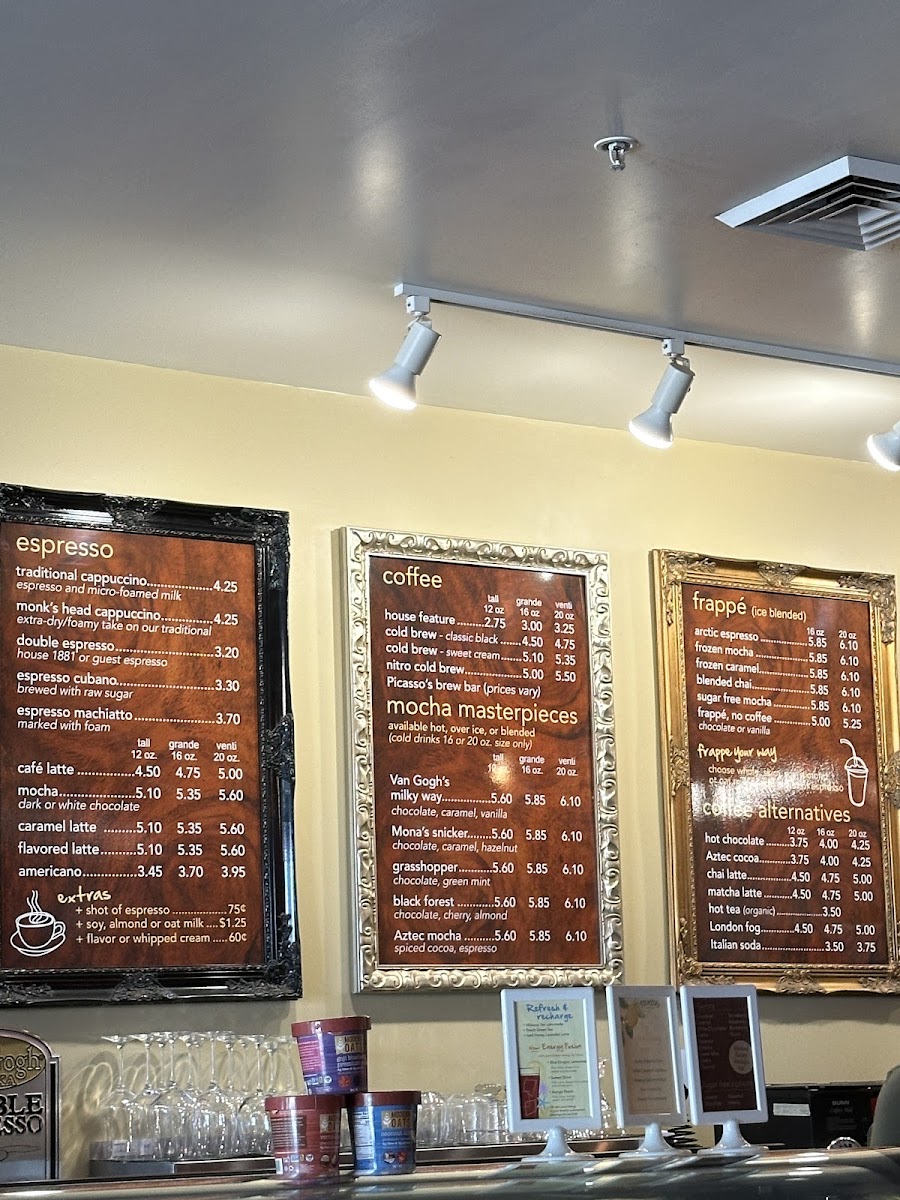 Picasso's Coffee Menu
